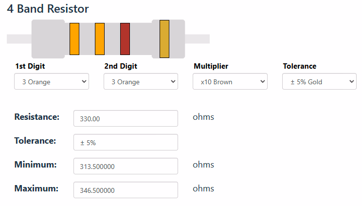 33×(1×101)=330Ω±5%检查一下: