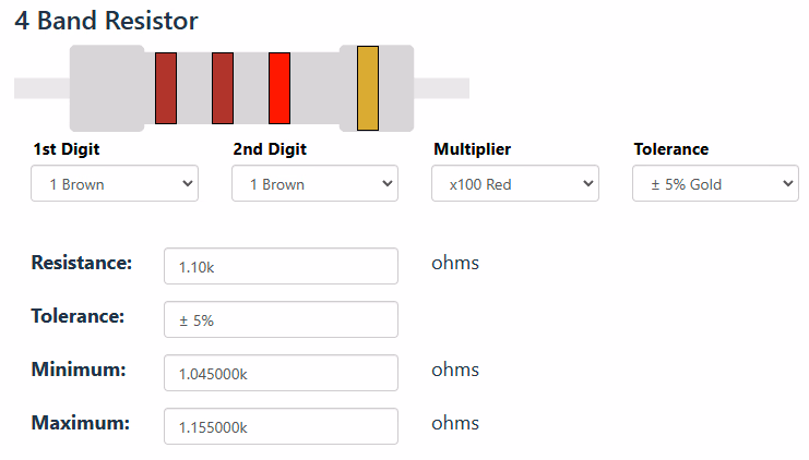 11×(1×102)=1100Ω±5%检查一下: