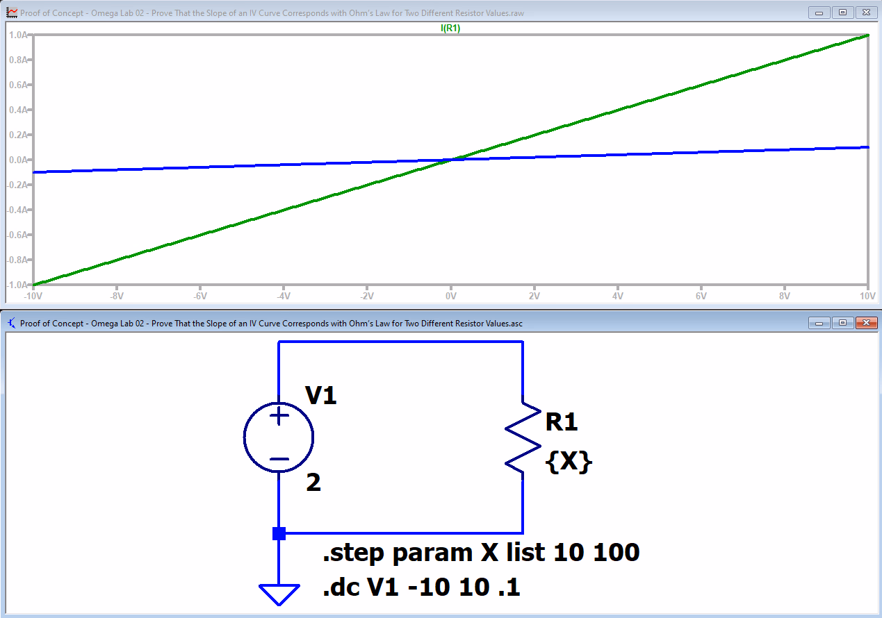 1. 证明不同阻值的两个电阻 IV 曲线斜率等于欧姆定律中的电阻值
