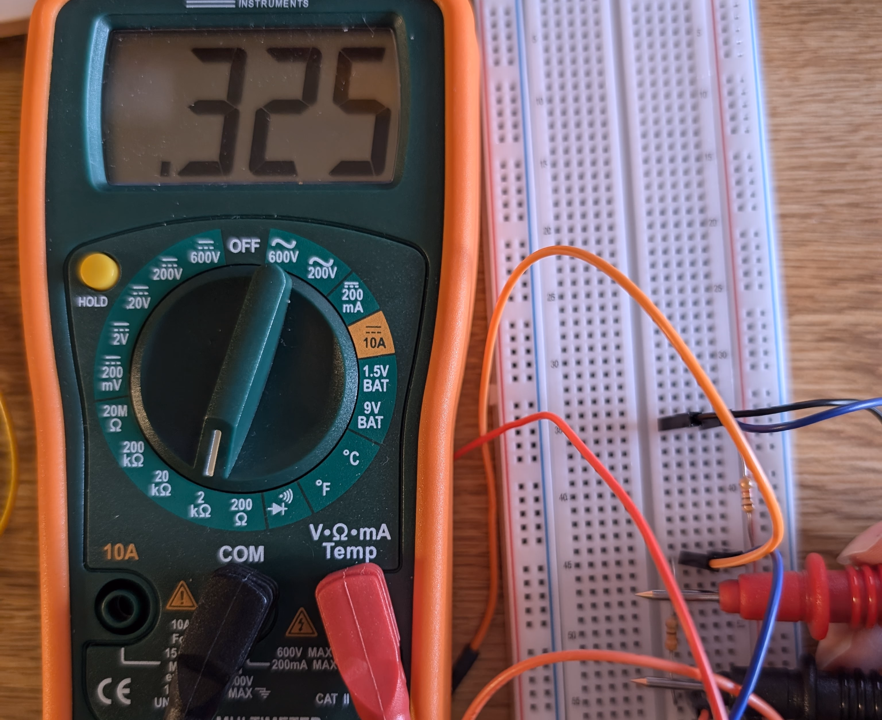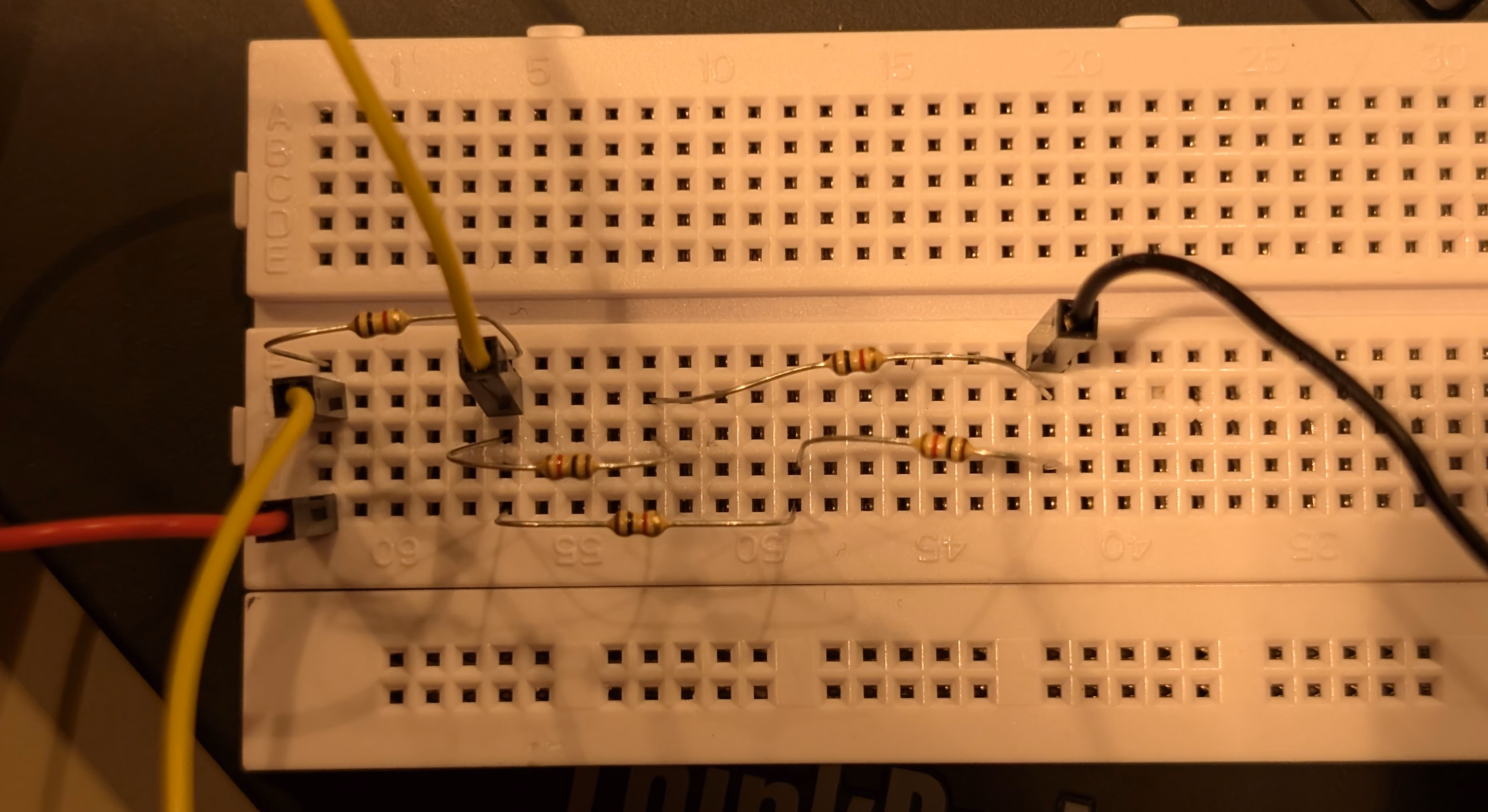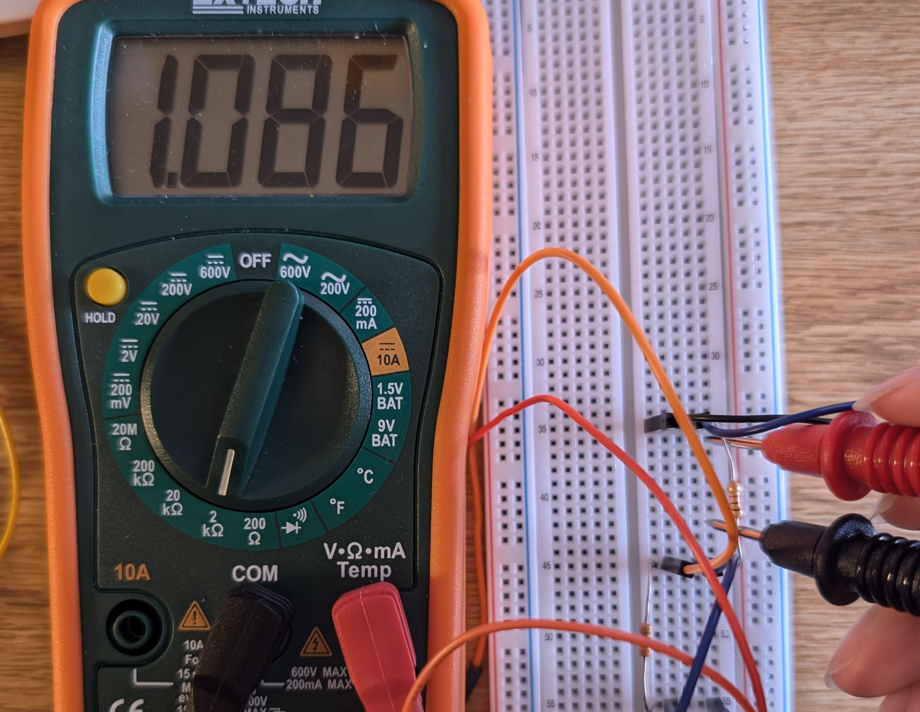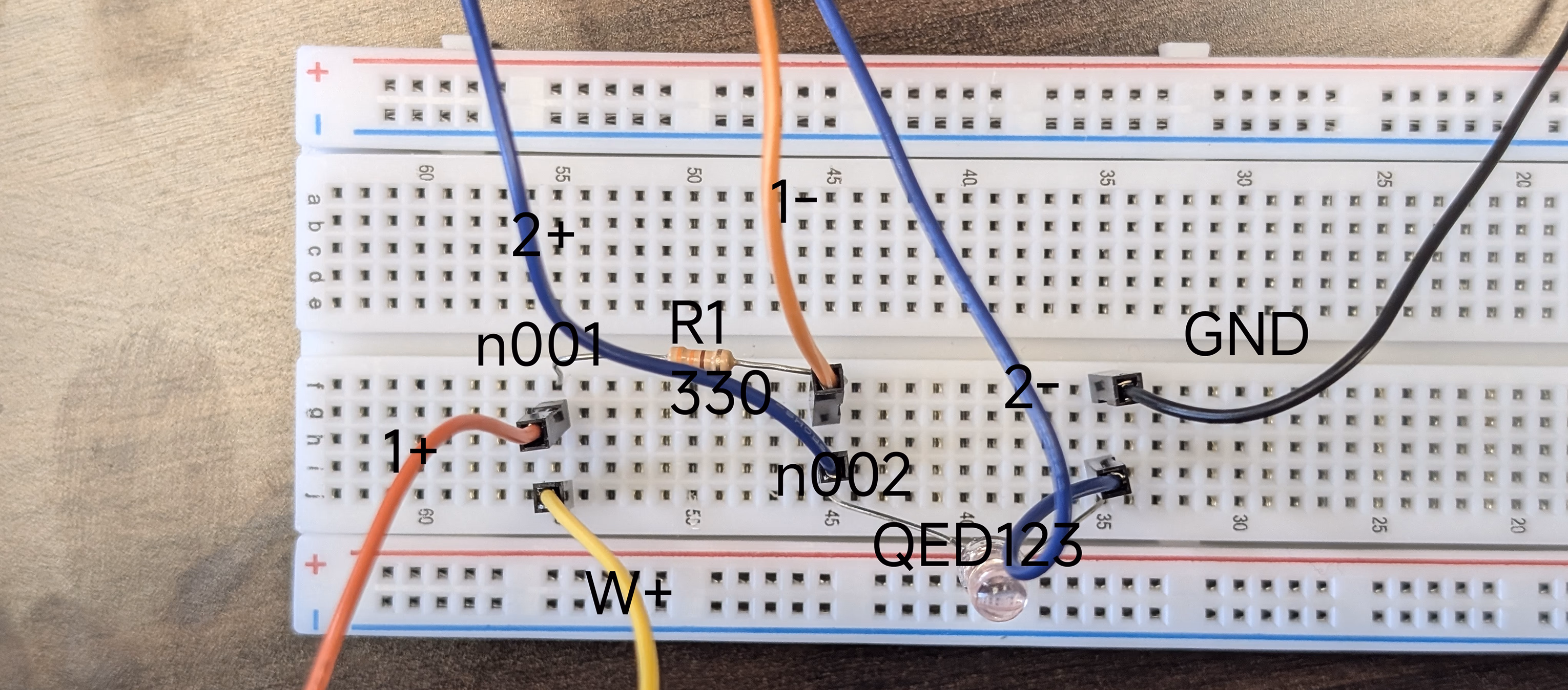 我们只改变了 R1,R2 的值。另外,很难在面包板上插表。因此我们在前面交叉了 V+ 电路