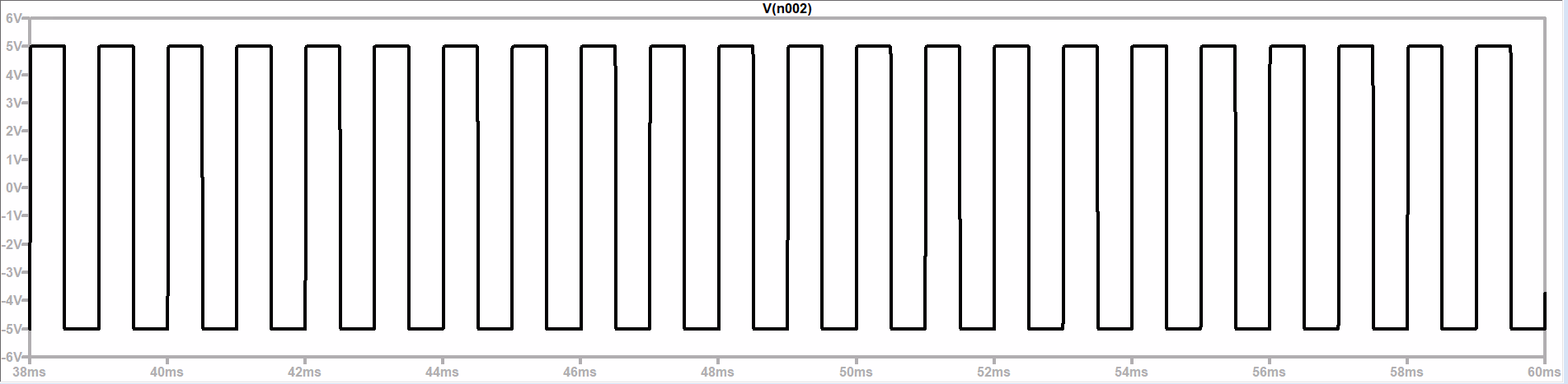 将我们的模拟与实验结果进行比较,我们看到两者都是方波,并且具有相同的周期和类似的幅度。它们在 5V 和 −5V 之间波动,这是我们的电源电压。这合乎情理,因为电源电压是运算放大器比较器的输出。