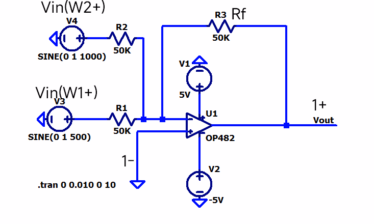 这证明了求和放大器的概念,即数学运算放大器的功能。