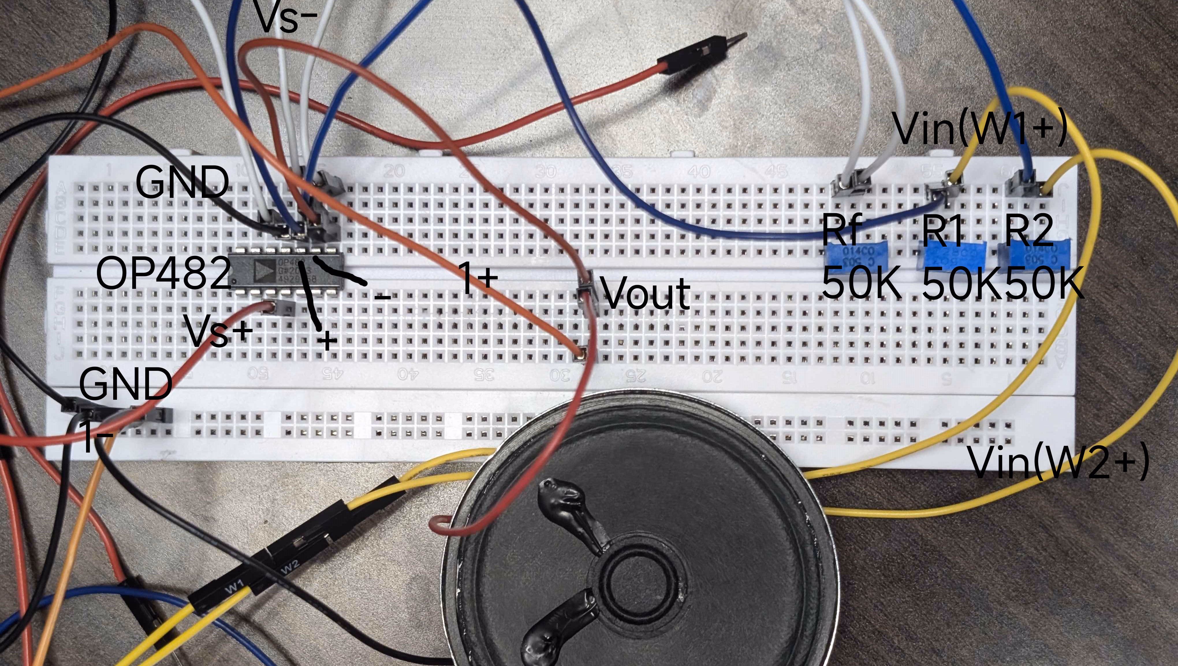 Vout=−R1Rf⋅V1−R2Rf⋅V2在我们的情况下,希望使用 50KΩ 的电位器作为电阻,以便根据需求进行调整。然后,我们得到: